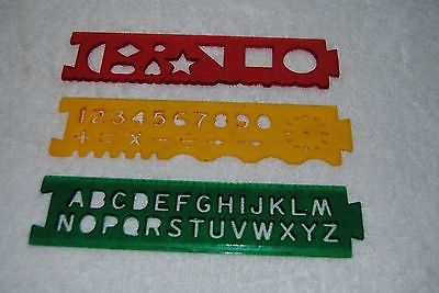 3 Vintage Toy Stencils Lot Rulers Numbers Math Letters Shapes Made in USA