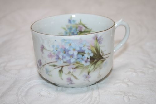 Title (ebay affiliate link): Old Paris Coffee Mug Tea Cup Blue Purple Wild Flowers Green Stems on White