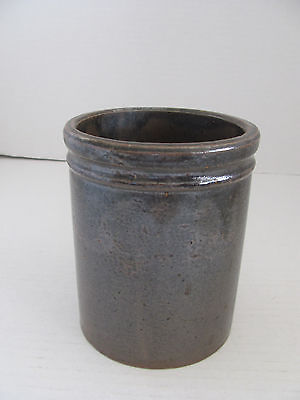ANTIQUE BROWN GLAZED POTTERY 5 1/2" CROCK