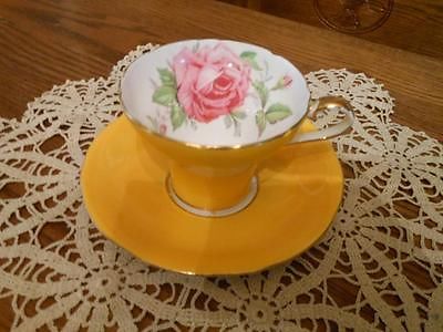 Just Beautiful Aynsley Golden Yellow w/Pink Rose Cup & Saucer Set-