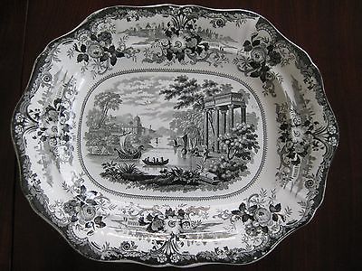 1830s Staffordshire Black Transferware Transfer Platter Grecian Scenery NR