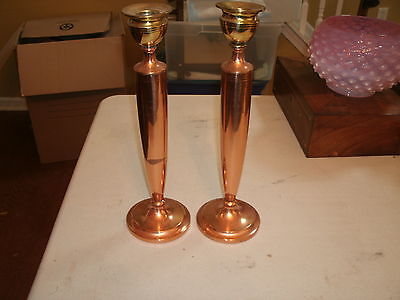 BEAUTIFUL ANTIQUE PAIR CANDLESTICKS COPPER & BRASS