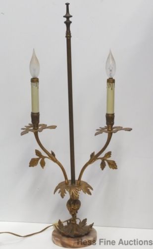 Title (ebay affiliate link): Lg Vintage Antique Continental French Gilt Dore Bronze 2 Light Leaf Table Lamp