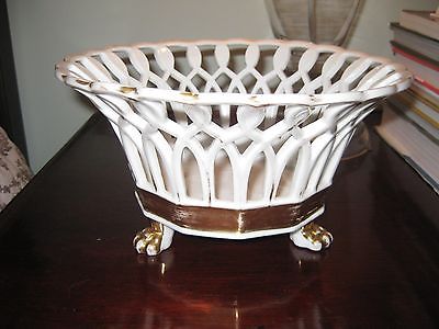 Title (ebay affiliate link): Old Paris Porcelain French Corbeille Reticulated Basket with Paw Feet NR