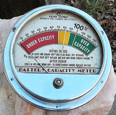 Title (ebay affiliate link): Vintage Car Battery Capacity Meter - 1937 - Heyer - 6 1/2" Diameter - Sign