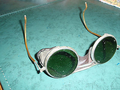 vintage steam punk eye glasses Safety Welding WWII machine shop green lenses