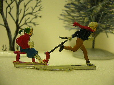 BOY PULLING GIRL ON SLED (LG VERSION) BY HANS HEINRICHSEN GERMAN LEAD FLAT