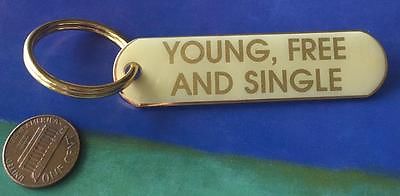 Title (ebay affiliate link): Vintage Large Enameled Brass Young Free And Single Keychain