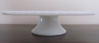 Title (ebay affiliate link): Vintage White Milk Glass Round Pedestal Cake Plate Gold & A Line Design 1950's