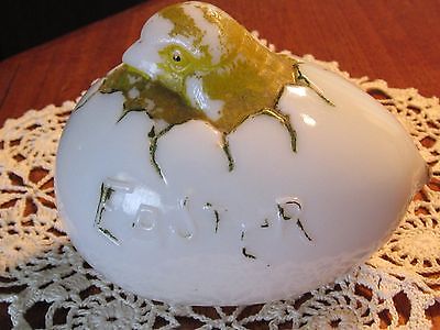 Title (ebay affiliate link): Vintage Milk Glass Chick Hatching From Easter Egg with One Issue