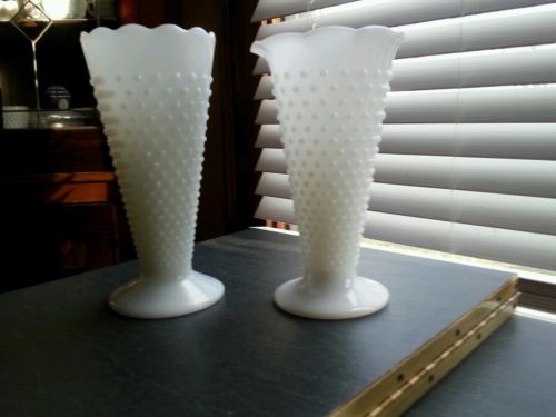 Title (ebay affiliate link): Vintage 60's Anchor Hocking Hobnail & Bars Tall Milk Glass Trumpet Vase 9.5"