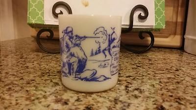 Vintage Davy Crockett White Blue Milk Glass Coffee Mug Cup Frontiersman NR