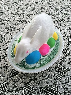 VINTAGE MILK GLASS RABBIT & EGGS COVERED CANDY DISH