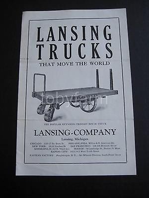 c1910 LANSING TRUCKS MICHIGAN ILLUSTRATED BROCHURE W/PRICES HANDTRUCK/WAGONS