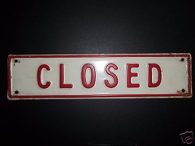 RARE Vintage metal CLOSED 12x3 sign Military ?? 1940s 50s ?? Red on White Estate