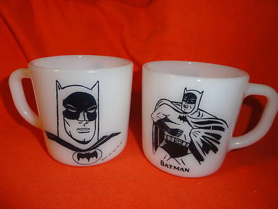 set of 2 BATMAN MUGS milk glass 1966 westfield