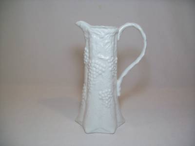 10" Milk Glass Grape Pattern Porcelain Pitcher