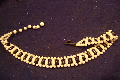 GRANDMAS ESTATE 1930'S MILK GLASS AND JET NECKLACE