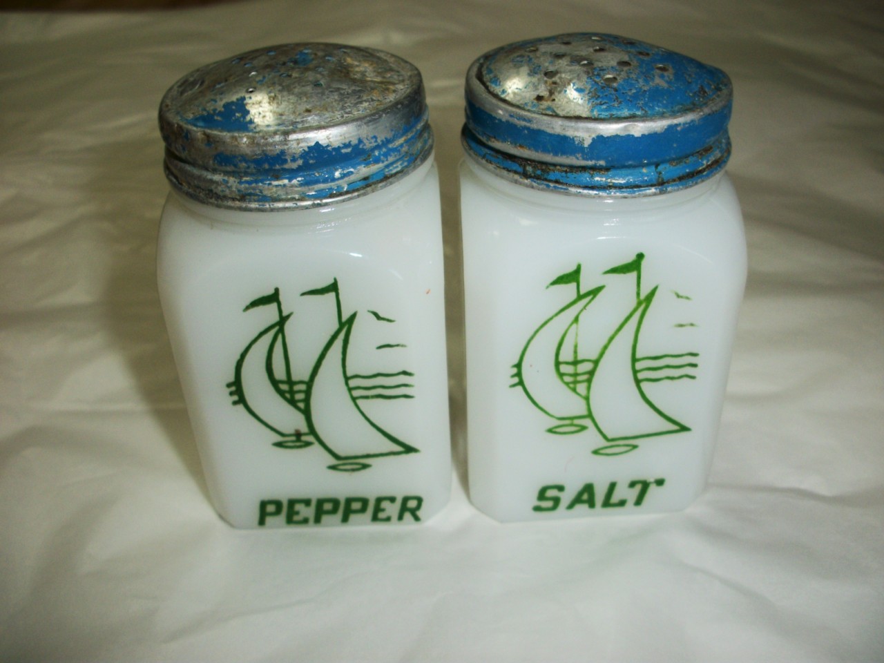 VINTAGE WHITE MILK GLASS SALT & PEPPER SHAKERS DEPRESSI