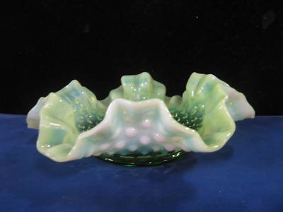 Fenton Vaseline Milk/ Hobnail Art Glass Candy Dish