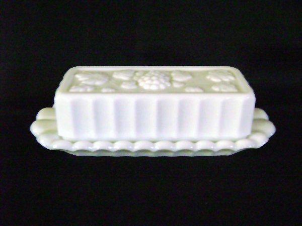 WESTMORELAND MILK GLASS BUTTER DISH - PANEL GRAPE