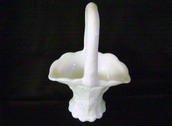 WESTMORELAND MILK GLASS LARGE BASKET - PANEL GRAPE