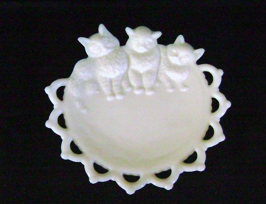 WESTMORELAND MILK GLASS TRINKET PLATE - 3 KITTENS