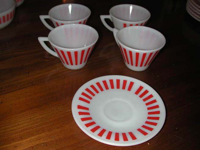 4 Hazel Atlas Milk Glass Candy Red Stripe Cups