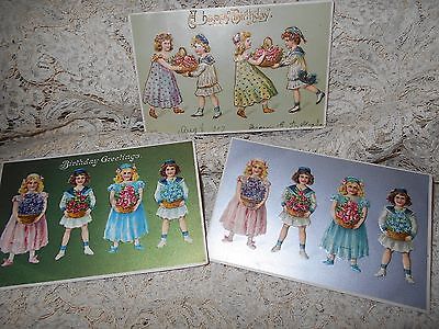 3 Antique 1907 Germany Embossed Postcards Fancy Girl Dolls vtg flowers