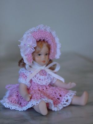 Title (ebay affiliate link): Antique/vintage CROCHETED DRESS and Bonnet for All Bisque Doll/Dollhouse Doll