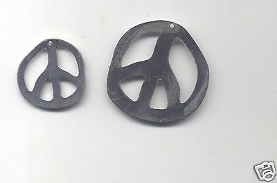 Title (ebay affiliate link): 2 Vintage Original METAL DIECUT PEACE CHARM Pendants Old Dime Store Stock NOS