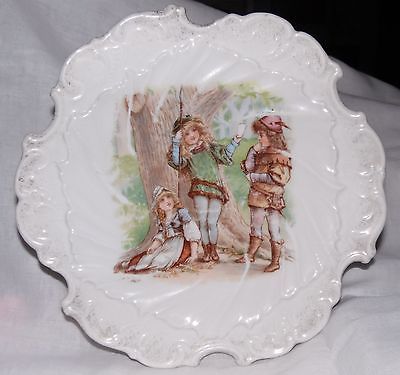 German made Plate 8 1/4 " Showing Three Children Very Old Leaf design on edges