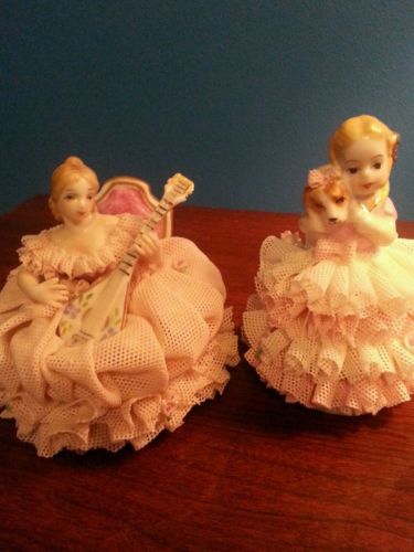 TWO VINTAGE MZ IRISH DRESDEN LACE PORCELAIN FIGURINES