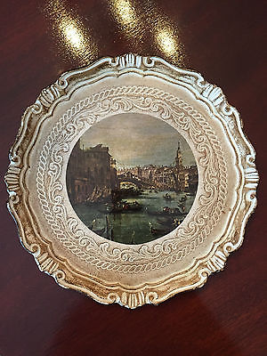 Vintage ITALIAN Carved Wood Round Tray Florentine VENICE