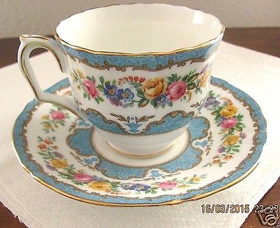 CROWN STAFFORDSHIRE TEA CUP AND SAUCER TURQUOISE ROSE FLORAL TEACUP