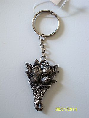 VINTAGE RUSS BERRIE PEWTER ROSE BOUQUET KEYRING "NOS" PEWTER KEYCHAIN ROSES