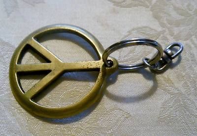 Title (ebay affiliate link): Vintage PEACE SIGN Symbol Solid Brass Key Chain Hippie Boho Goth Steampunk