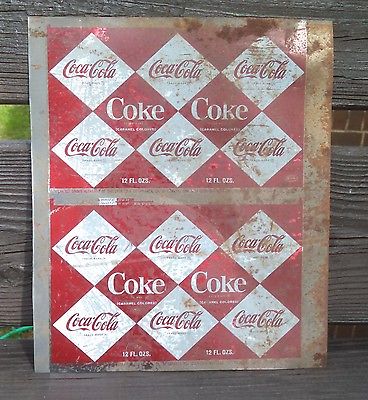 Title (ebay affiliate link): Vintage uncut sheet of two diamond harlequin coca cola cans
