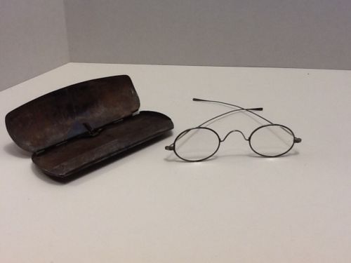 ANTIQUE Oval Wire Rim Glasses W/ Case