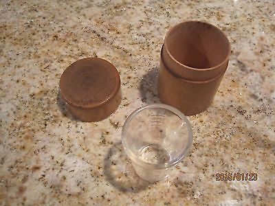 VINTAGE GLASS TABLESPOON TEASPOON MEASURING JIGGER WITH BOXWOOD HOLDER