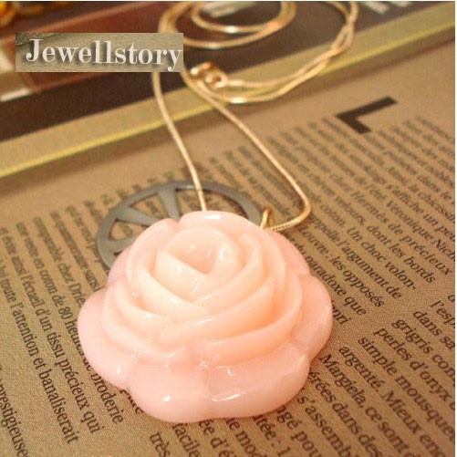 Title (ebay affiliate link): Sweet Antique Cream Pink Flower Honey Necklace 14K GP