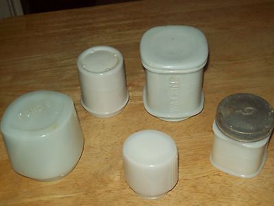VINTAGE LOT 5 MILK GLASS ADVERTISING VANITY JARS COLD CREME WATKINS PONDS ECT.