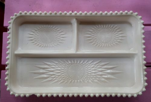 Title (ebay affiliate link): VTG 50s Mid Century Jeanette Shell Pink Milk Glass Divided Hostess Relish Dish