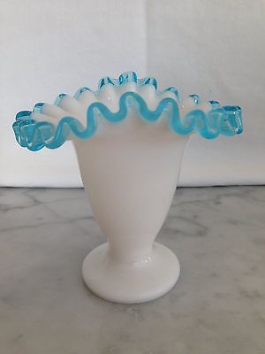 Fenton Milk Glass with Blue Crest Ruffle