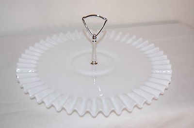 Title (ebay affiliate link): Fenton 13" White Hobnailed Milk Glass Ruffled Edge Tid Bit Cookie Serving Plate