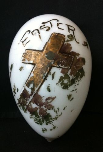Title (ebay affiliate link): LARGE Antique Vintage Blown Milk Glass Handpainted Easter Egg with CROSS 1900's