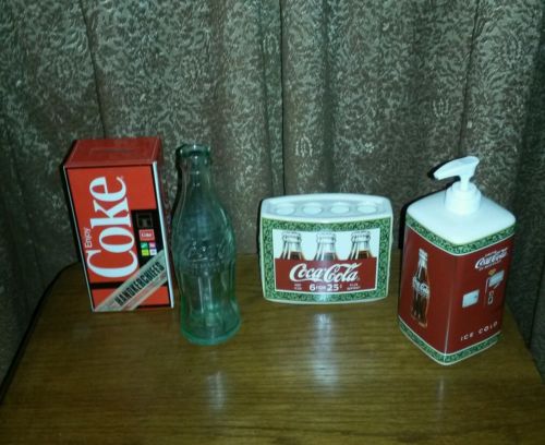 Title (ebay affiliate link): Four Vintage Coca-Cola Items ~soap dispenser - toothbrush holder- coin bank