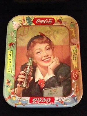 Title (ebay affiliate link): Vintage 1953 Menu Girl Coca-Cola Tin Tray