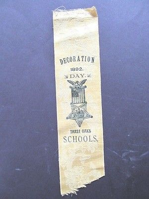 Title (ebay affiliate link): VINTAGE 1892 DECORATION DAY RIBBON GRAND ARMY OF THE REPUBLIC THREE OAKS SCHOOLS