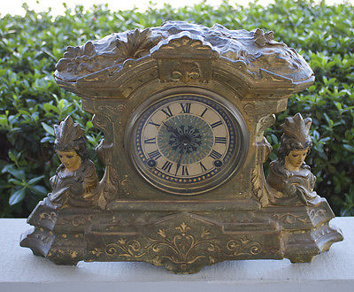 ANTIQUE Nouveau Deco Native American Figural American Clock Co. Mantle Clock